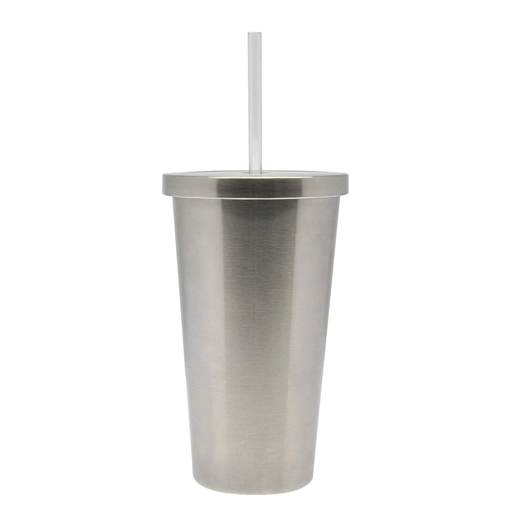 Enjoy a day out at the beach while sipping your favorite cold beverage from this stainless steel tumbler. With a straw and lid, this tumbler is perfect to carry while in transit.