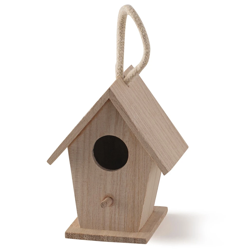 These unique decorative birdhouses of unfinished wood are a perfect canvas for your creative inspiration. Use colorful paints to decorate this natural wood.