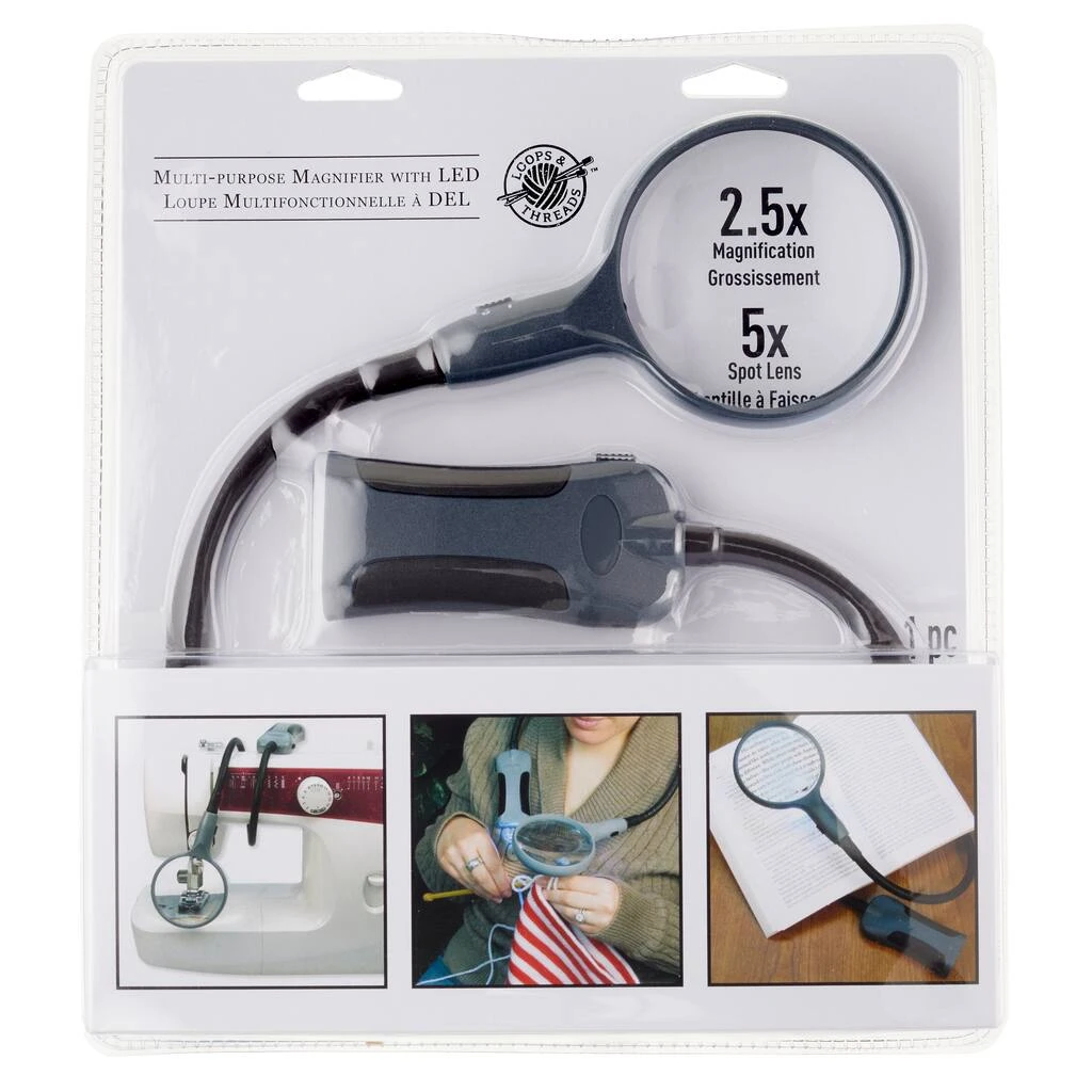 A great viewing aid for all your projects, this can be used as a hands-free or a free-standing magnifier and even includes a built-in LED light. Simply wrap the 20″ coil around a convenient object and adjust the lens and light for easy viewing. You can even wrap it around your neck and shoulders for hand work. Provides 2.5x magnification with 5x spot lens.