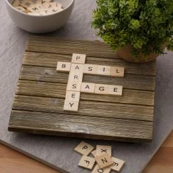 A fun way to personalize your craft projects! These alphabet tiles are made from stamped plywood and are ideal for scrapbooking and altered books. Paint or stain these wood tiles to suit your needs.