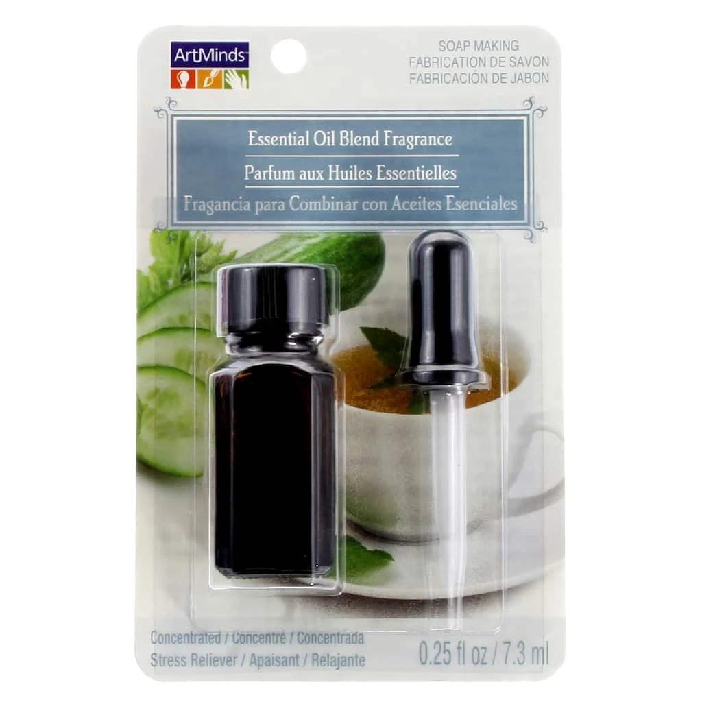 Add this green tea and cucumber scented essential oil blend fragrance by ArtMinds to your soap mix to infuse lovely aroma into your handmade soaps. It comes with a dropper to allow you to control the amount easily. This soothing blend of essential oils acts as a stress reliever.