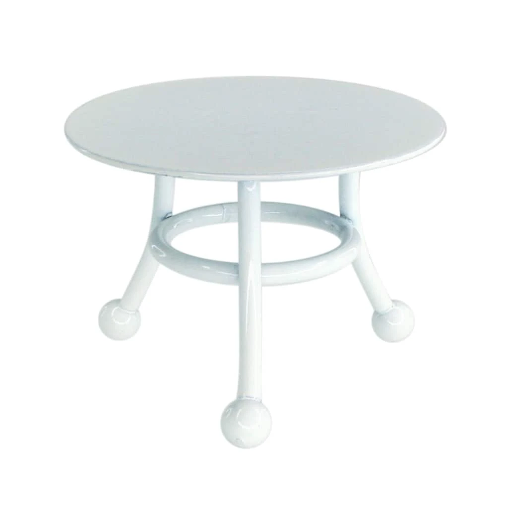 This mini metal table makes a charming accent for displaying dioramas, terrariums and other small-scale scenes in your home or garden.
