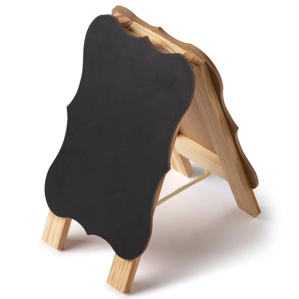 Whether it’s displayed at a special event, like a wedding reception, or just placed in your home or office, this easel is highly versatile. It has a chalkboard surface on one side and a dry erase surface on the other side. It’s perfect for posting menus, announcements, instructions and to do lists. Stain or paint the unfinished wood to match your décor, or just leave it natural.