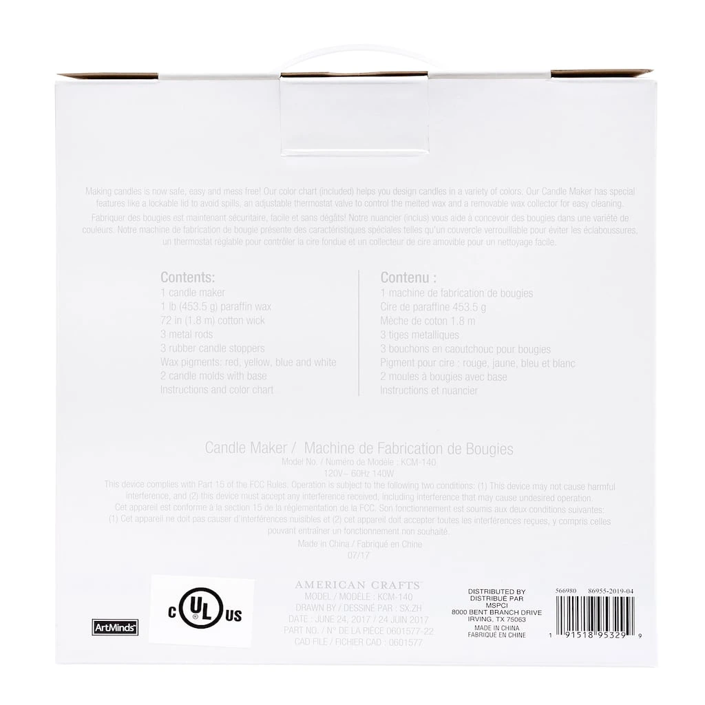 Making candles is now safe, easy and mess free. Our color chart (included) helps you design candles in a variety of colors. Our candle maker has special features like a lockable lid to avoid spills, an adjustable thermostat valve to control the melted wax, and a removable wax collector for easy cleaning.