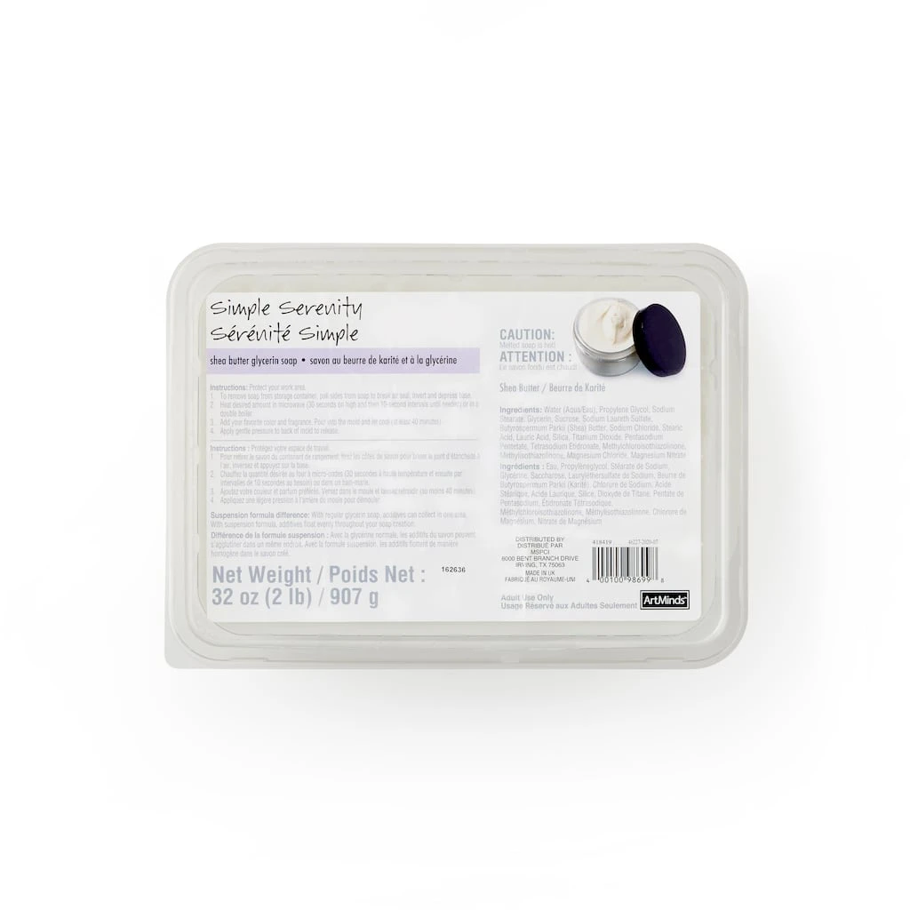 Make something great! You’ll find this melt-and-pour base a go-to starting point for all your soap making. Melt in the microwave, mix in fragrances and colors, and pour into your molds — perfect soap every time. With this suspension formula additives will float evenly throughout your soap creation.