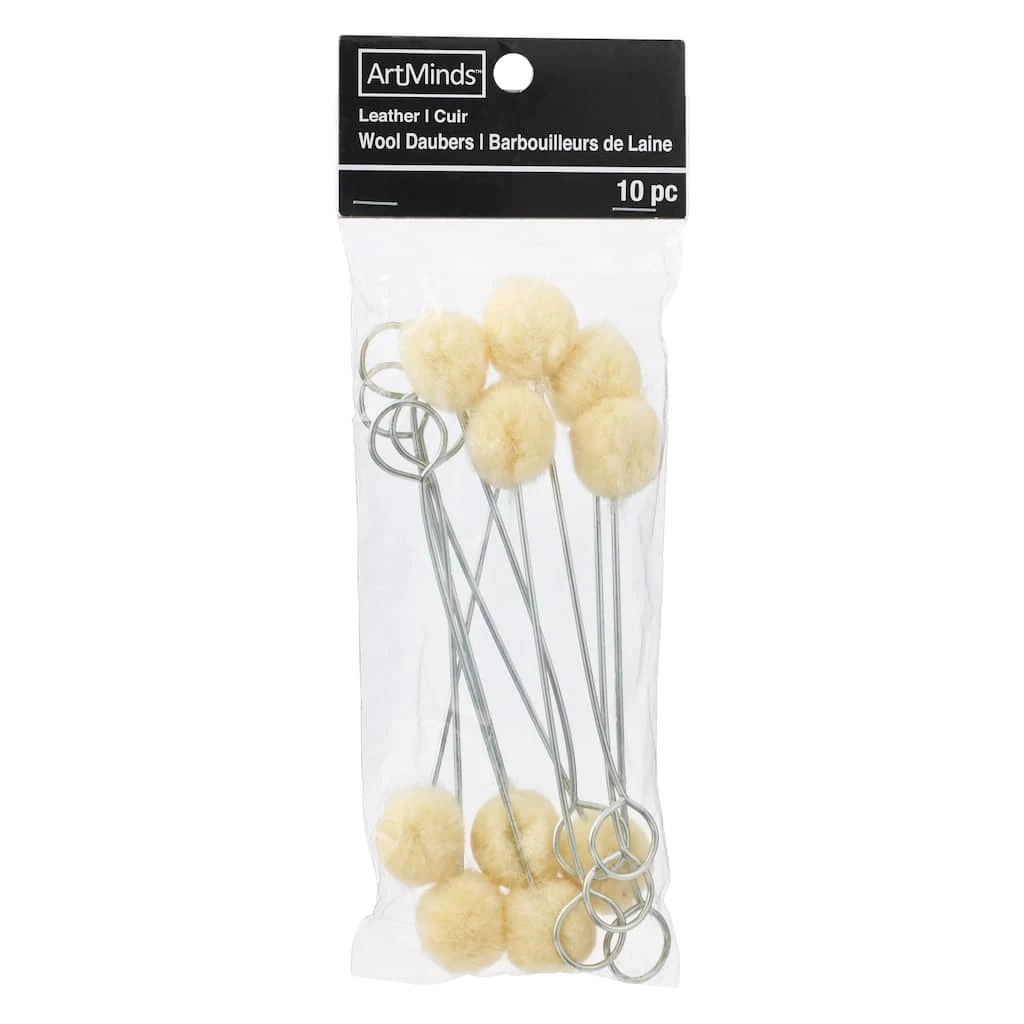 The Wool Daubers by ArtMinds™ can be used as dye applicators to apply dye stain or sheen to your leather products. These applicators ensure broad and smooth stains and dye strokes.